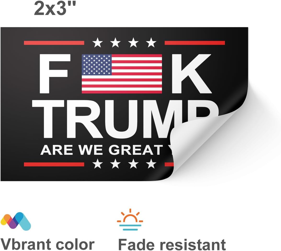 YINENA 100Pcs Fuck Trump Stickers Are We Great Yet Funny Anti Trump Stickers Decal For Car Motorcycles Helmets Laptop Window Waterproof Decor 2×3 Inch