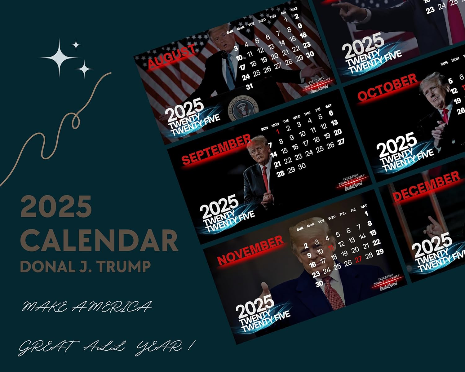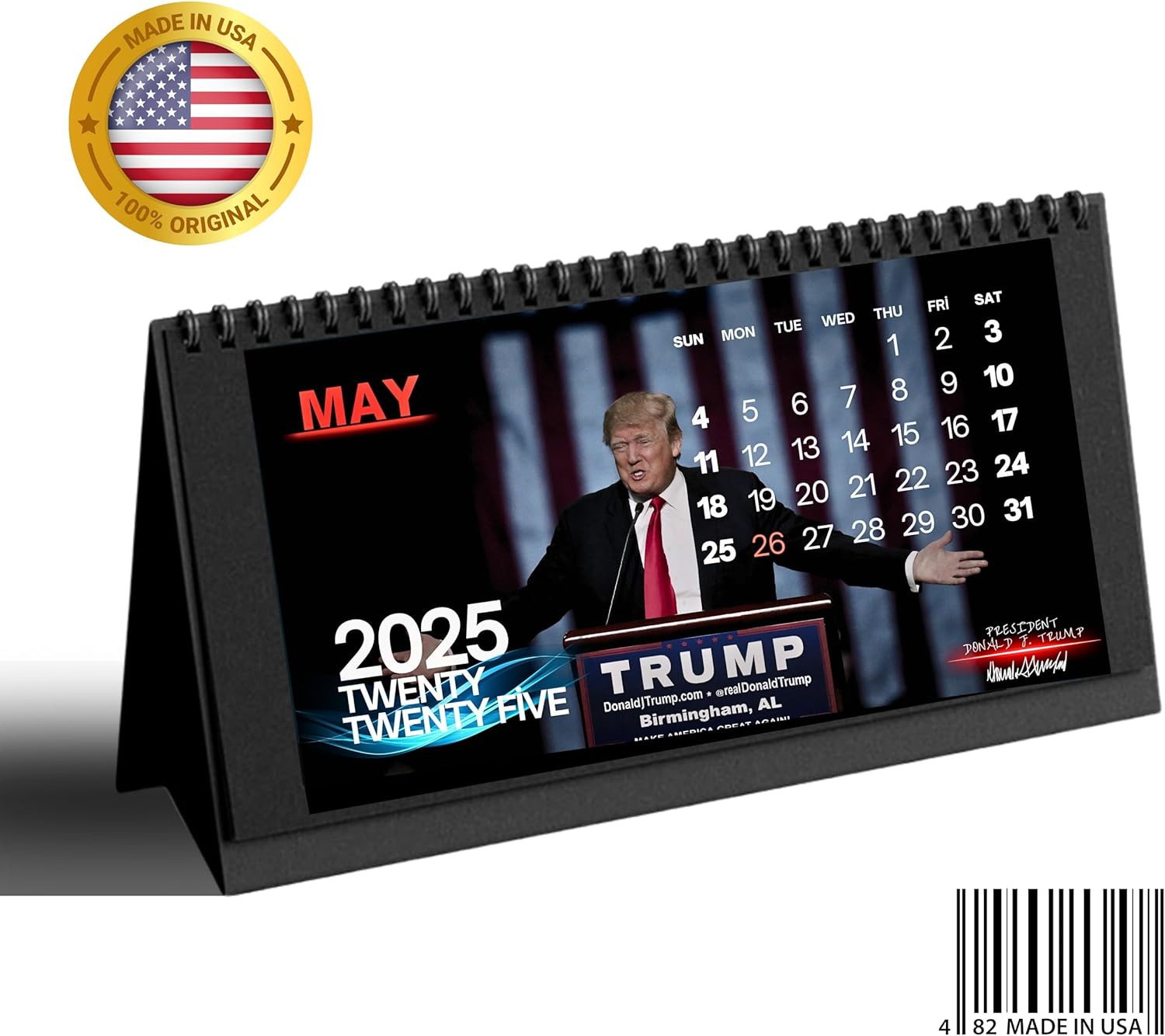 *****Celebrate 2025 with Trump: Iconic images & quotes for each month *****High-Quality Design: Made in the USA for lasting quality *****Desk-Friendly Size: Compact, stylish, perfect for office decor *****Perfect Gift: Great for Trump fans, holidays, birthdays, or any occasion *****Inspiring Theme: “Make America Great All Year” slogan throughout