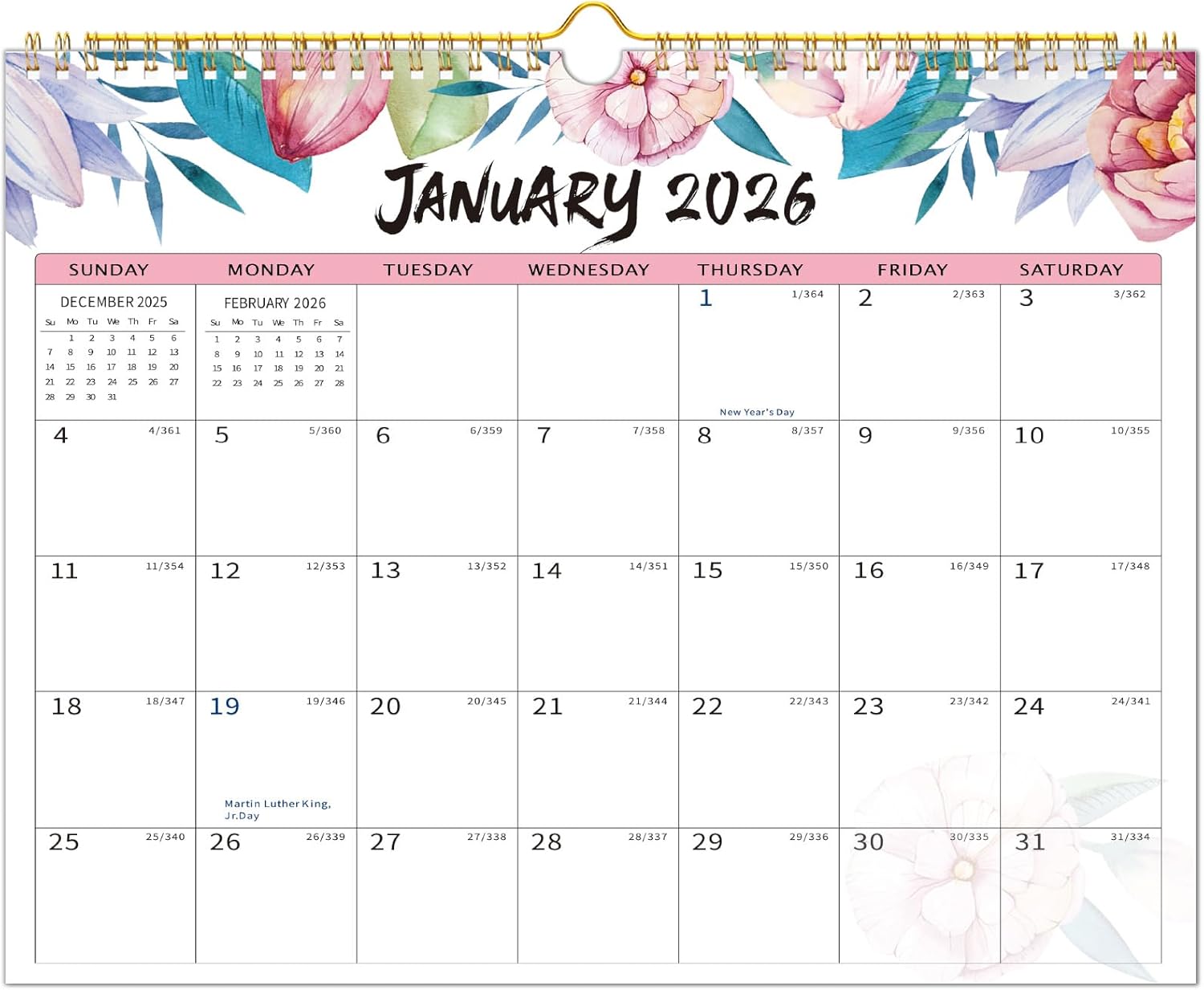 Versatile for Any Space: Measuring 11.5″ x 14.7″, this calendar fits beautifully in any environment. Use it as a family command center in the kitchen, a productivity tracker in your home office, a shared schedule in the workspace, or an educational tool in the classroom—blending function with floral charm