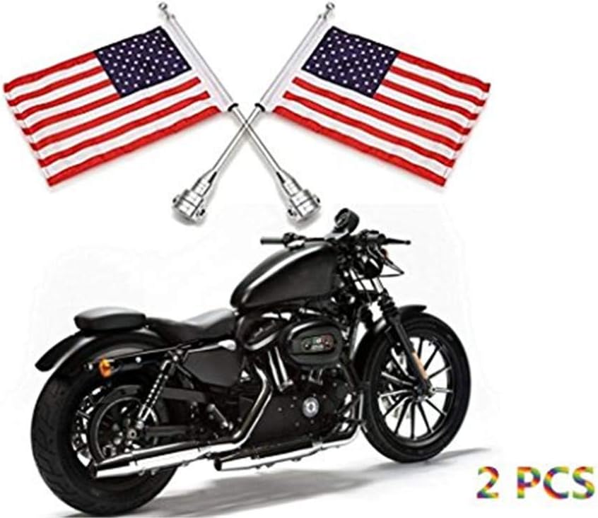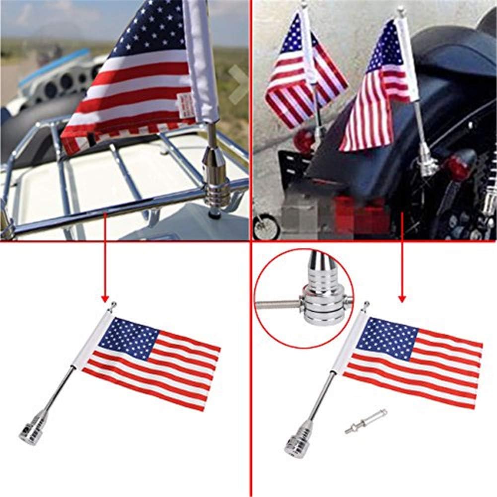 Espear Motorcycle Flagpole Mount and 6″ x 9″ Premium Double Sided USA Flag with Flags Sliver Flagpole for 1/2″ Tubular Luggage Racks