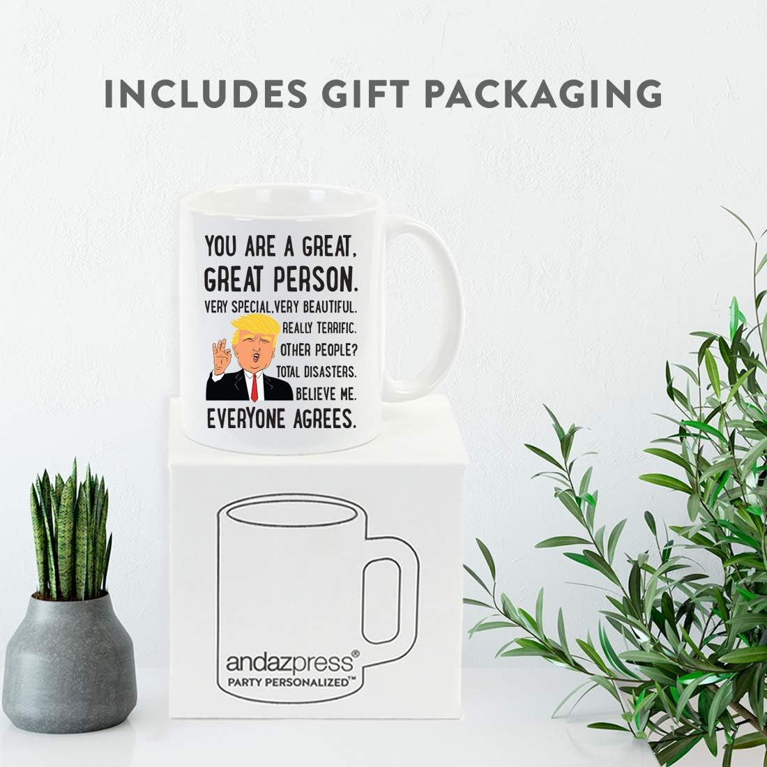 Gift Box Included for Convenient Gifting: This donald trump mug funny theme arrives boxed for gifting; reliable thank you gifts trump accessories option that works for birthdays, retirements, or white elephant parties; works as donald trump cup for boyfriend or girlfriend gift option; makes a suitable funny trump mug great friend item for team appreciation; pairs well with other employee appreciation mugs displays; practical trump birthday mugs option for conversation starters