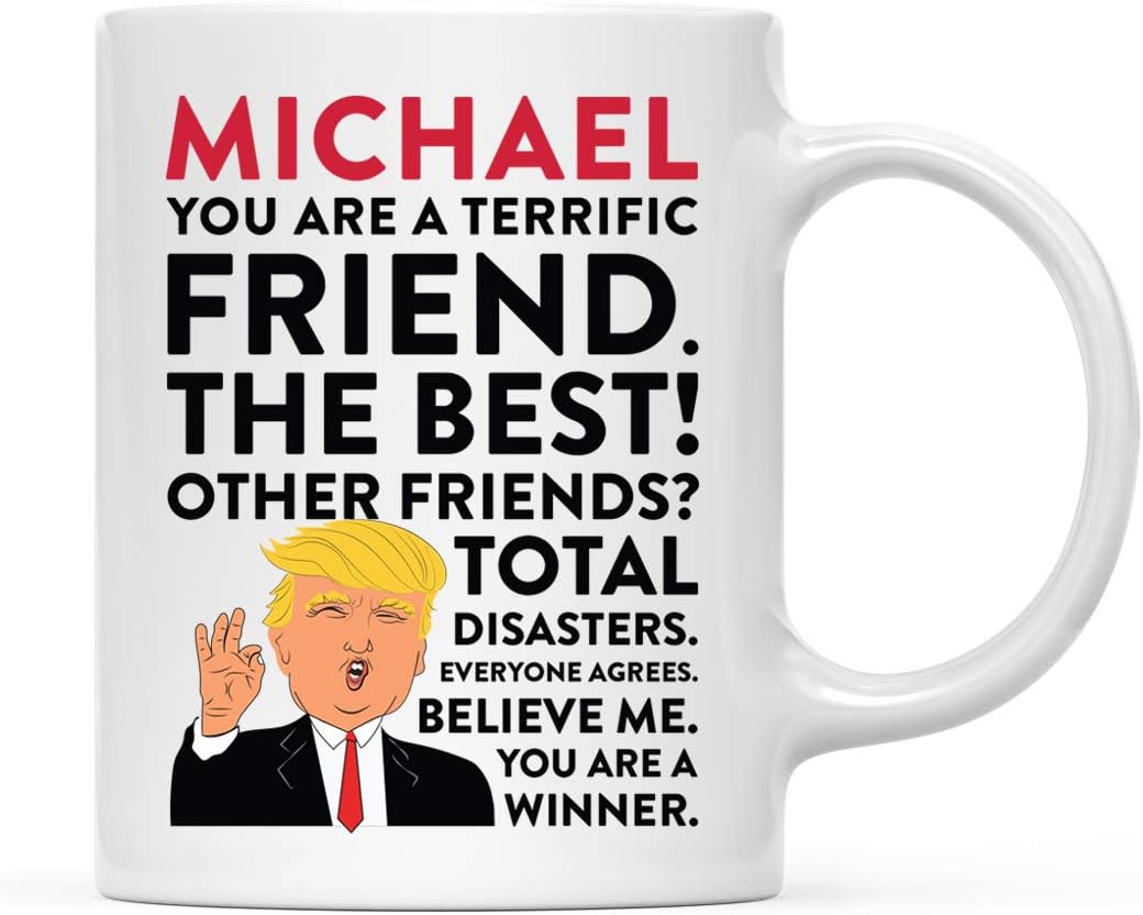 Humorous Ceramic Mug with Name Personalization: Features the phrase “You are a terrific friend” with a name customization; suitable as a thoughtful donald trump custom mug for casual appreciation; a personalized option designed to complement other trump personalized gifts for coworkers or friends; designed as a reliable and funny donald trump friend cup mug that fits routine settings; a memorable friend trump gift mug idea; suitable as a funny trump mug for friend to gift conveniently