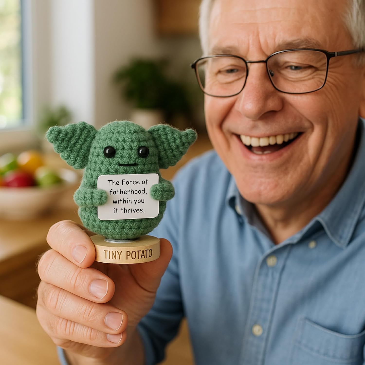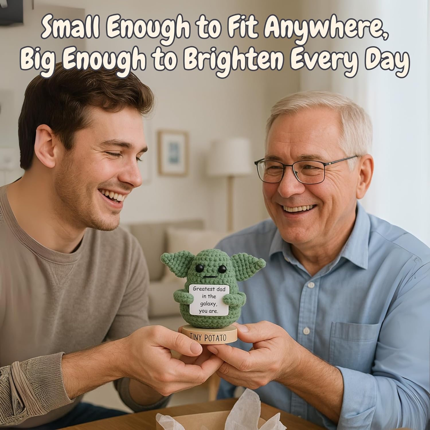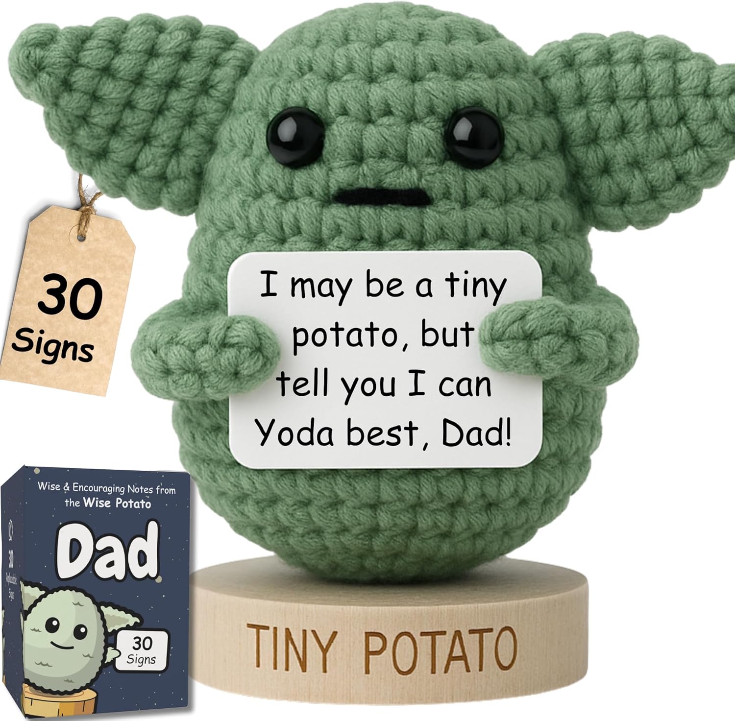 FUNNY GIFT FOR THE BEST DAD IN THE GALAXY – A handmade crochet Yoda-style plush with 30 interchangeable signs filled with funny, thoughtful, and heartwarming messages from kids or wife. A unique way to celebrate Dad’s humor, wisdom, and love across the galaxy on birthdays, Christmas, retirement, or just because.