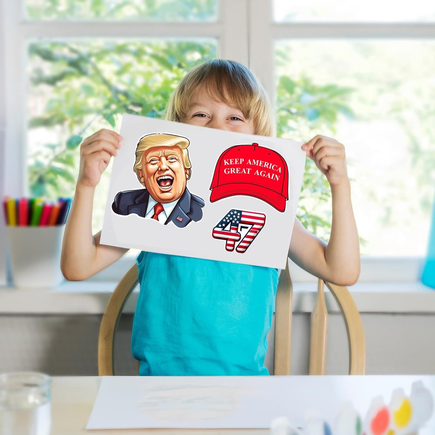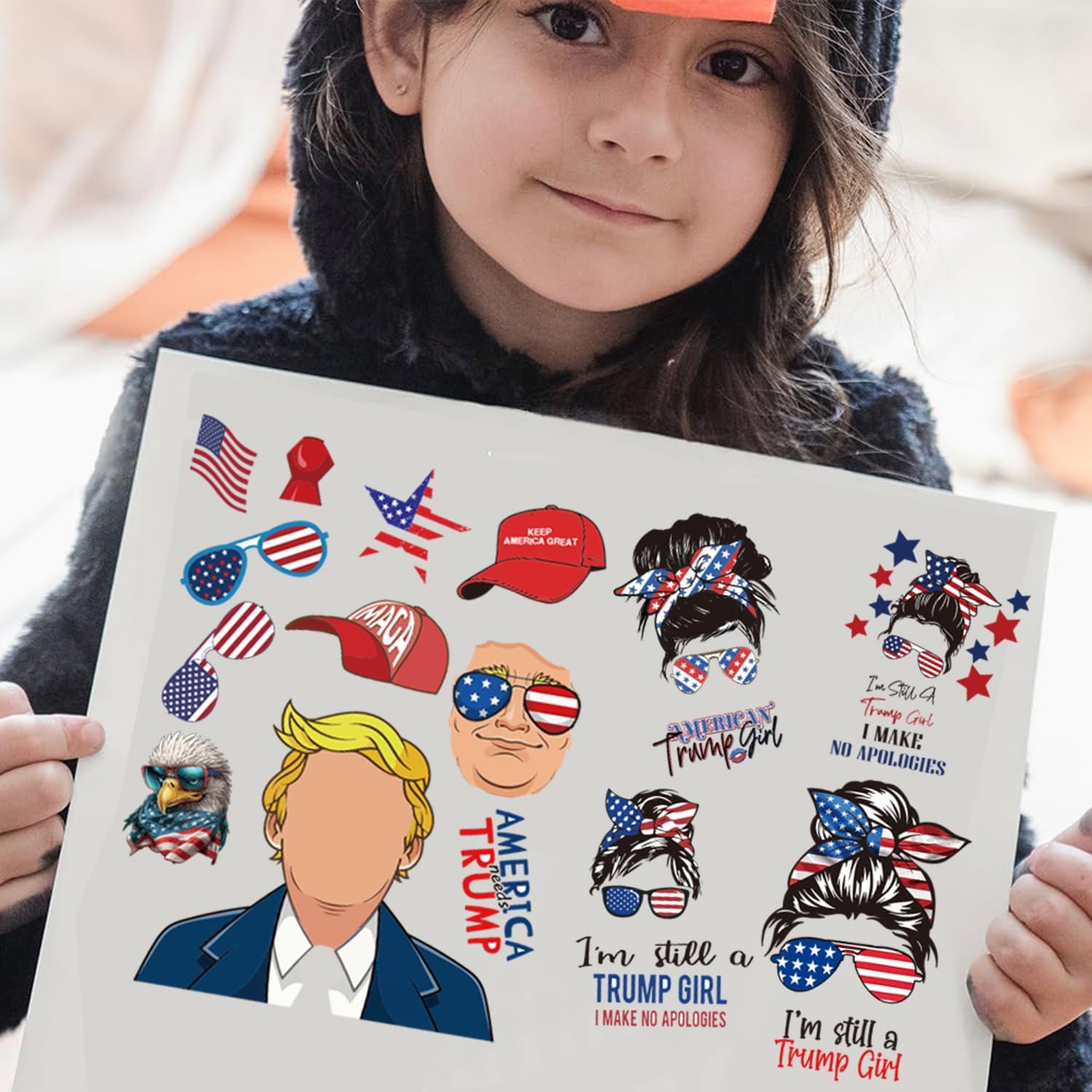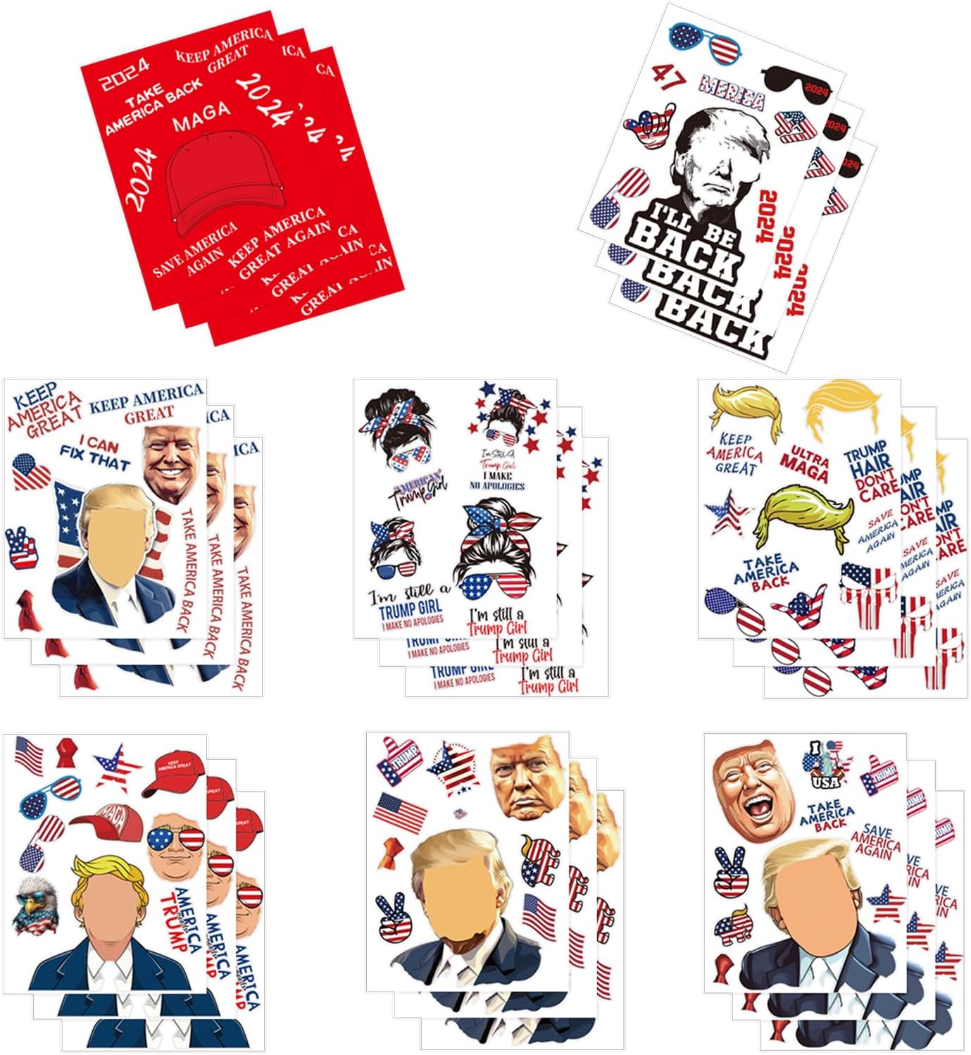 Quatity: 3 pcs trump stickers of 8 theme, 24 pcs trump make a face stickers all together! More than your need