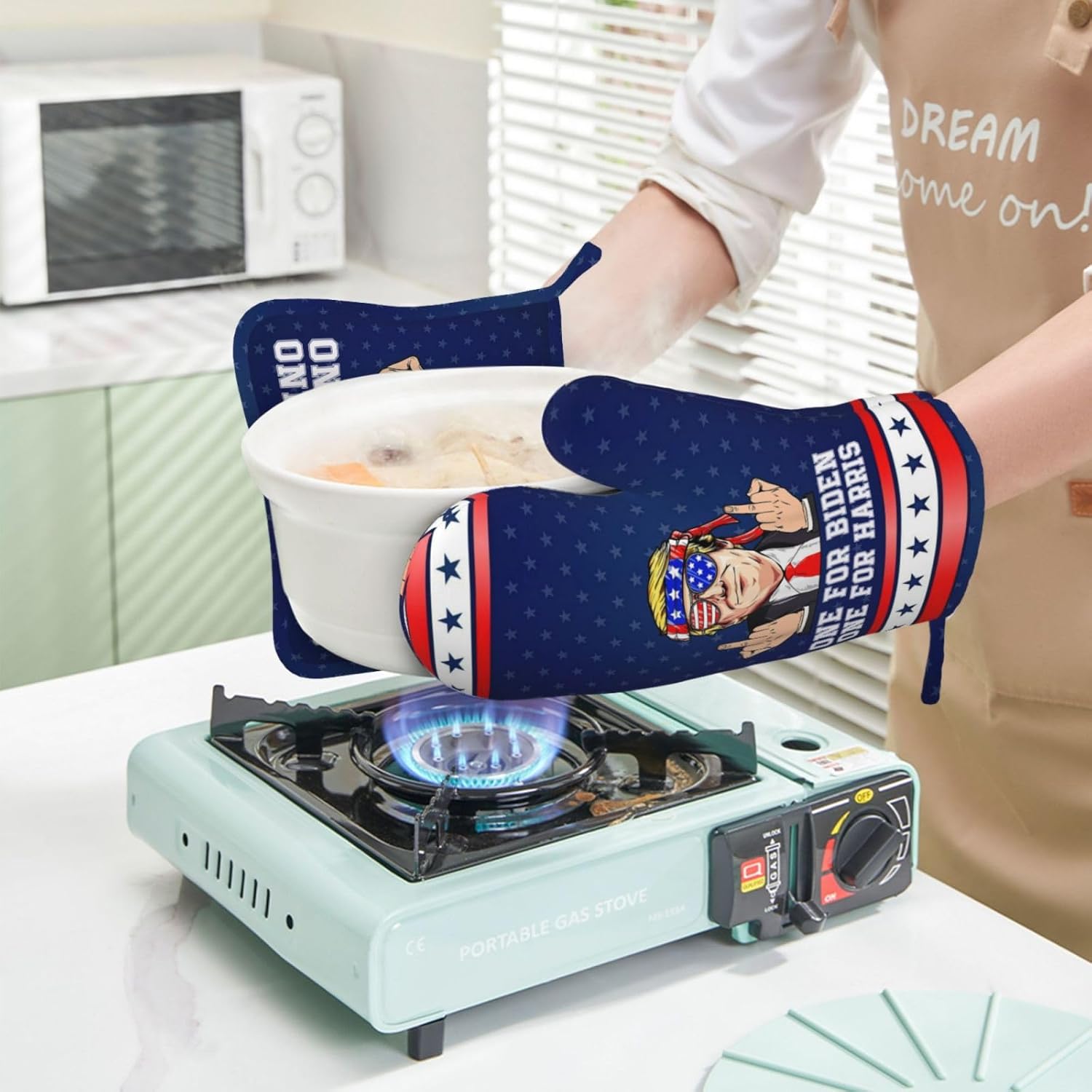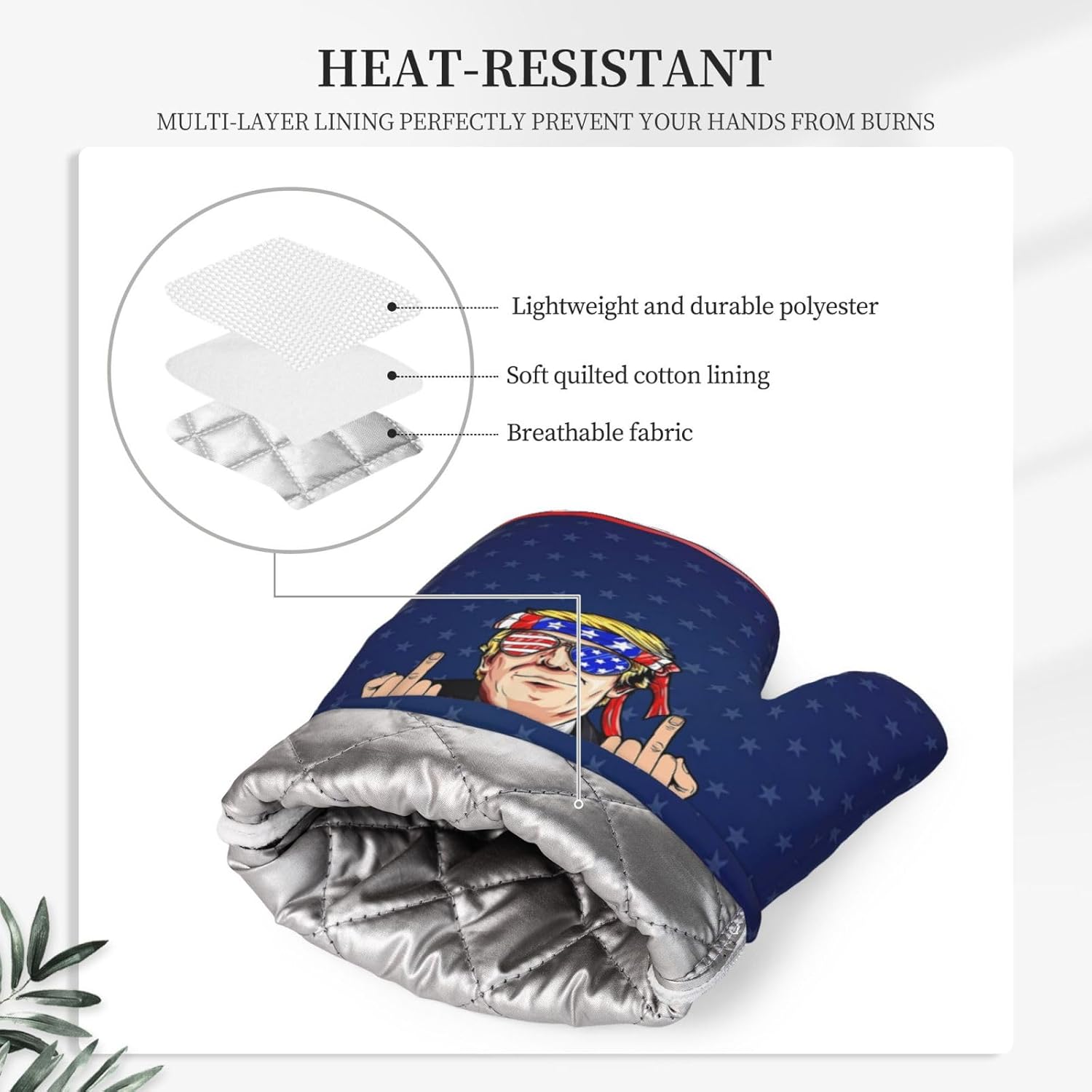 Donald Trump Middle Finger Biden Harris America Republican Gifts Baking Gloves For Oven: Oven mitts and pot holders are widely used for cooking, barbecue, microwave oven, soup cooking, oven end dishes. Perfect for all cooking uses. Suitable for home kitchen, restaurant, hotel, baking shop, outdoor BBQ, camping accessories.