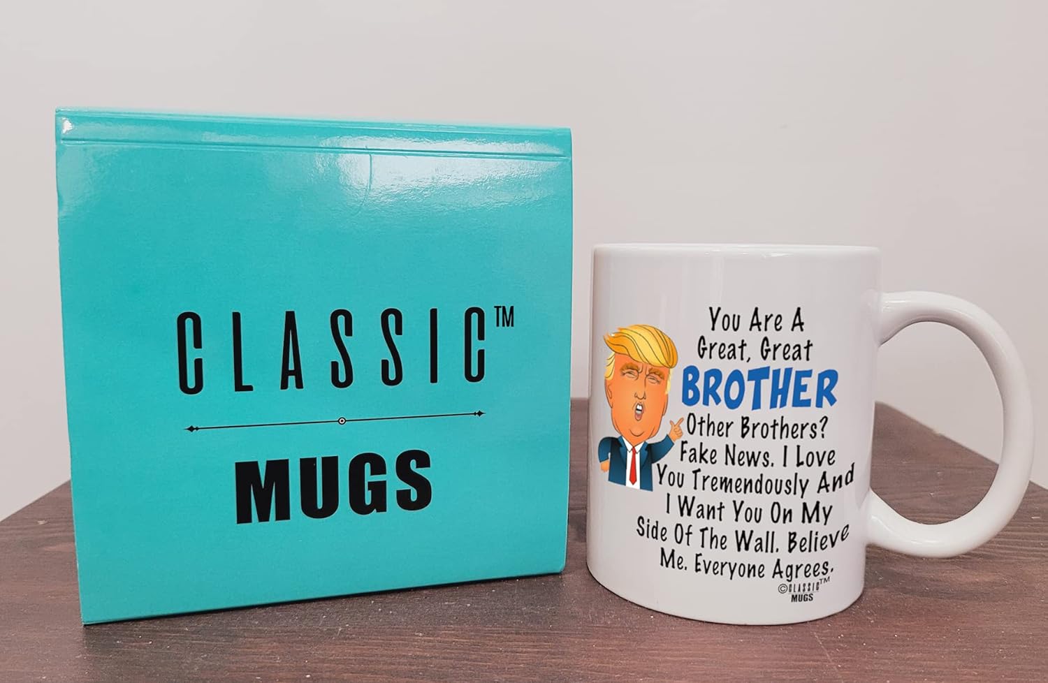 Donald Trump Terrific Brother Fun Brother Coffee Mug Cup Graduation Gag Gifts for Bro Men Him Guy from Sister Mom Dad Friend Funny Gift for Christmas Birthday