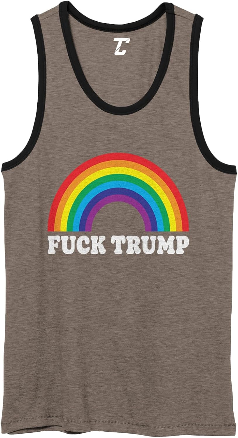 Looking for the perfect tank to wear anytime? Look no further! This cool Fuck Trump – Anti Trump Political Pride Unisex 2-Tone Tank Top is a comfortable, affordable way to express yourself. Whether purchasing for friends, family members, or loved ones you can be sure to put a smile on their face. The design is printed on a cool, comfortable, 50% Cotton, 50% Polyester vintage jersey unisex adult two-toned tanktop. This amazing tank will become a staple in your wardrobe. Perfect athletic fit for the summer or any exercise. This amazingly soft tank features contrast binding on the neck and arm holes.