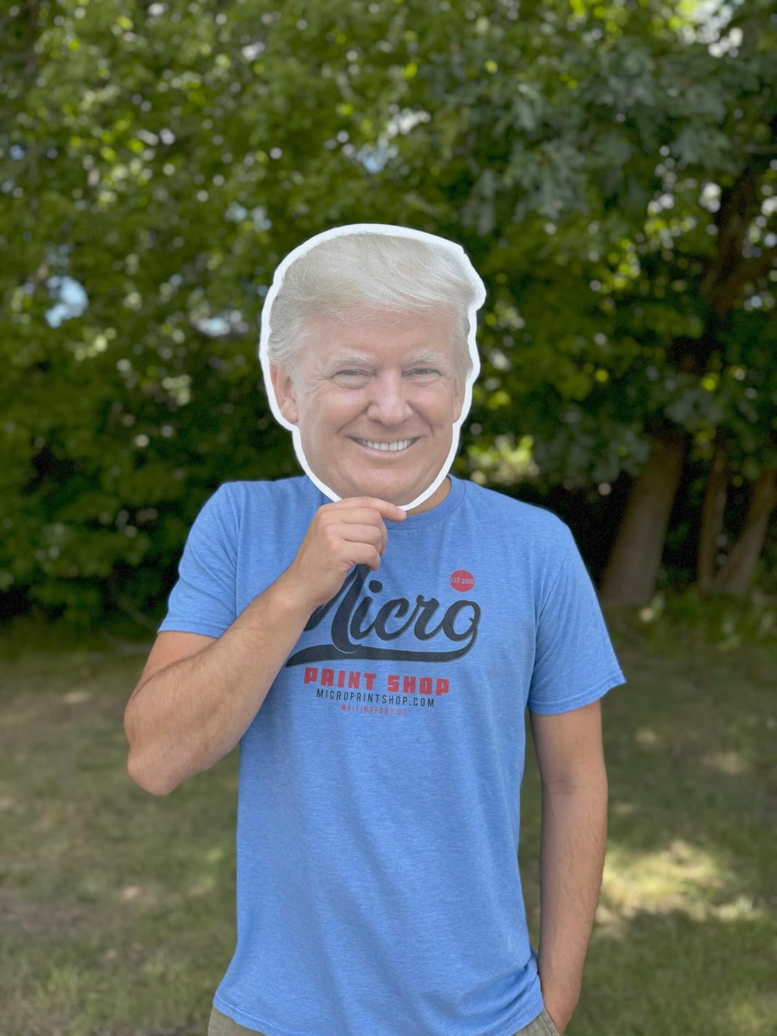 Donald Trump Head Cutout for Lawns Yards and Rallies Comparison Photo on Average Adult Male