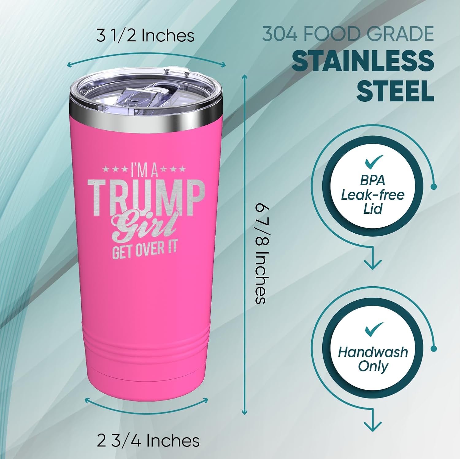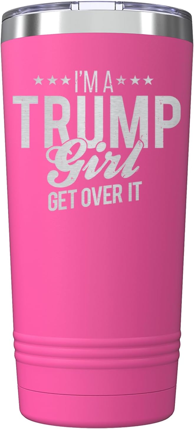 I’m A Trump Girl Get Over It Stars Insulated Tumblers 20 oz. with Lid, Stainless Steel Cups Travel Coffee Mug, Novelty Donald Trump Gifts (Pink)