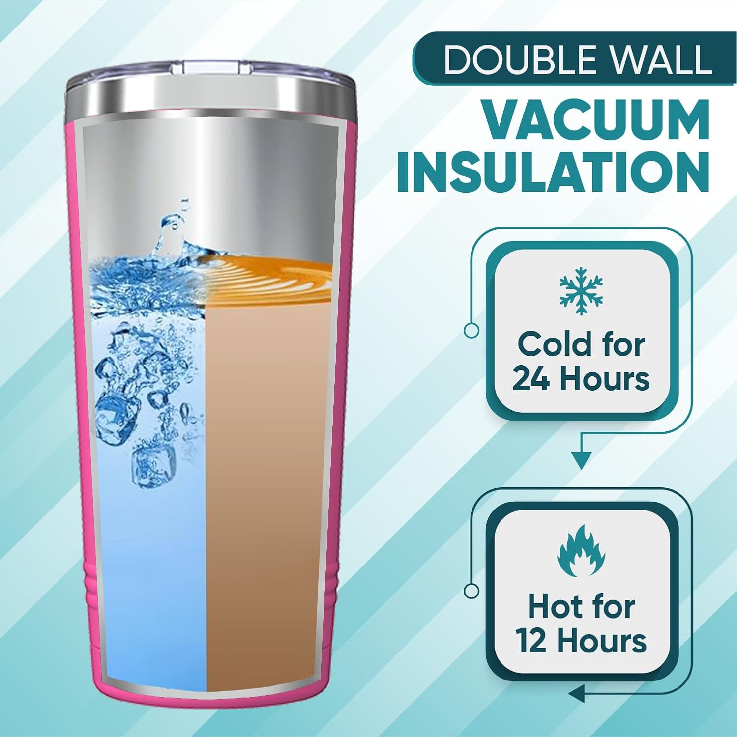 Advance insulation; Utilizing double-walled vacuum insulation technology, this tumbler maintains your preferred beverage temperature—whether cold, hot, or warm—for an extended period; Say goodbye to condensation, as it ensures your hands stay dry and protected throughout