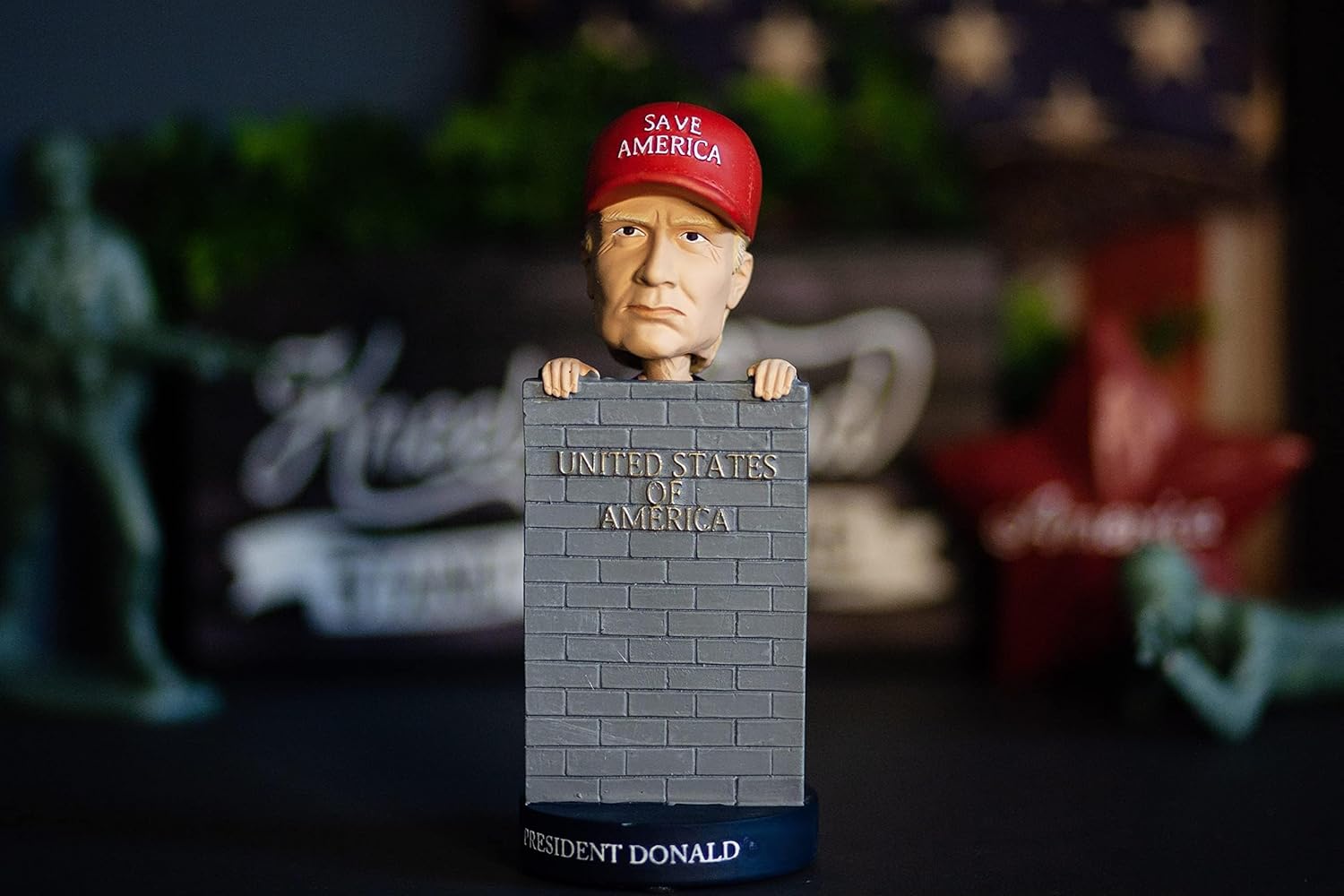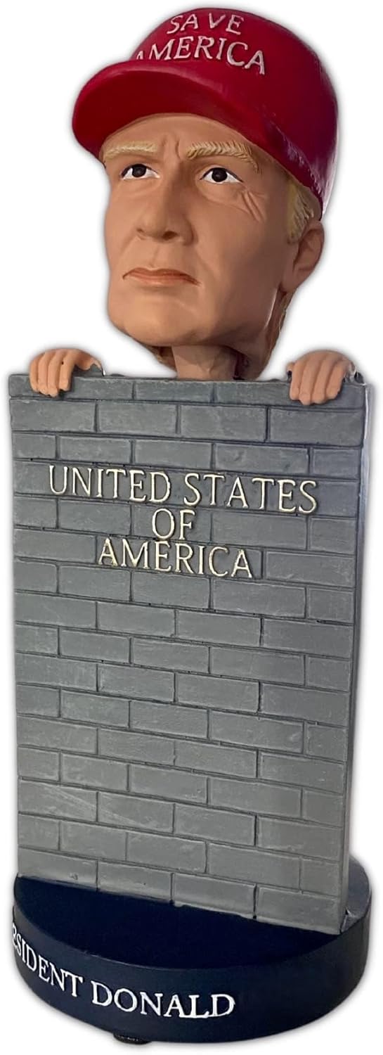 𝗜𝗰𝗼𝗻𝗶𝗰 𝗣𝗿𝗲𝘀𝗶𝗱𝗲𝗻𝘁 𝟮𝟬𝟮𝟰 𝗖𝗼𝗹𝗹𝗲𝗰𝘁𝗶𝗯𝗹𝗲: Celebrate the 45th President with our Donald-T 2024 Save America Bobblehead Doll. Featuring Donald-T standing by the border wall, this bobblehead is the perfect addition for collectors, Republicans, and supporters looking to celebrate his legacy.