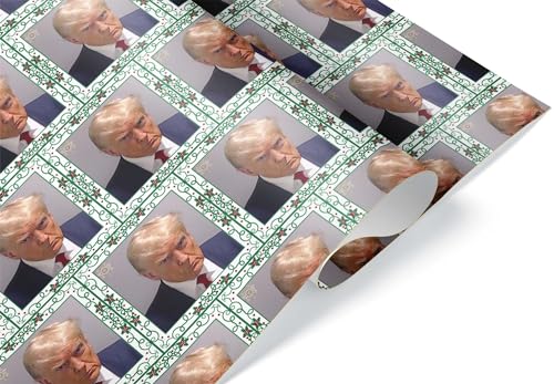Decorative Donald Trump Mug Shot Wrapping Paper, President 45 Gift Wrap, Republican or Democrat Election Theme Party Decor (One 20 inch x 30 inch sheet)