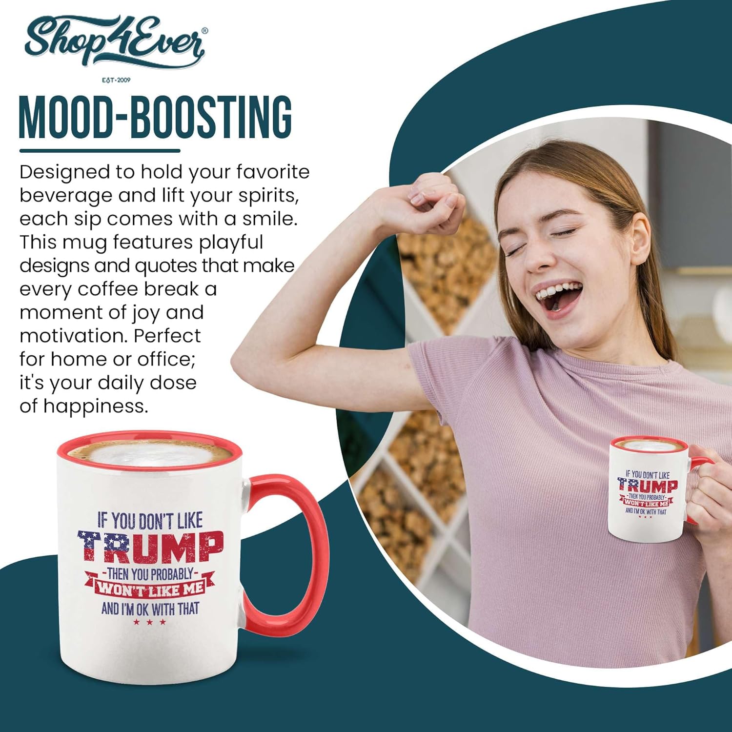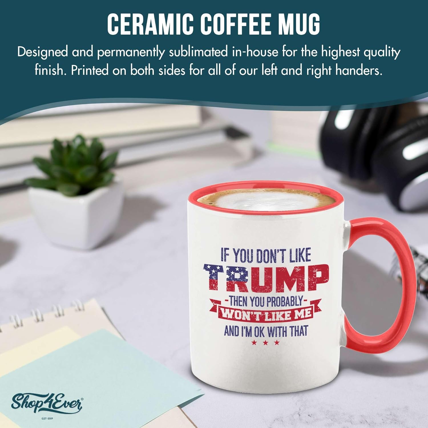 Make a bold statement with your morning brew. This “If You Don’t Like Trump Then You Probably Won’t Like Me” 11 oz ceramic coffee mug is perfect for expressing your political stance with humor and style. Whether you’re sipping coffee at home, in the office, or on the go, this mug lets everyone know where you stand. Made from high-quality ceramic, it’s microwave and dishwasher safe, ensuring both durability and convenience. Ideal for conservative friends, Trump supporters, or anyone who appreciates a good political joke.