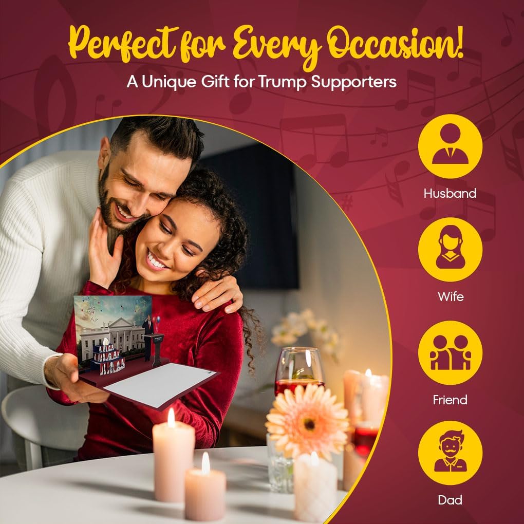 IDEAL GIFT – The talking trump birthday card is an ideal gift for your friends, family members and beloved ones. A perfect birthday gift for your boss, coworker, grandparents, uncle, cousin. They will love this gift and enjoy having 3D model of President’s oval office and birthday greeting in Donald Trump’s real voice with some beautiful words written on White House stationary.
