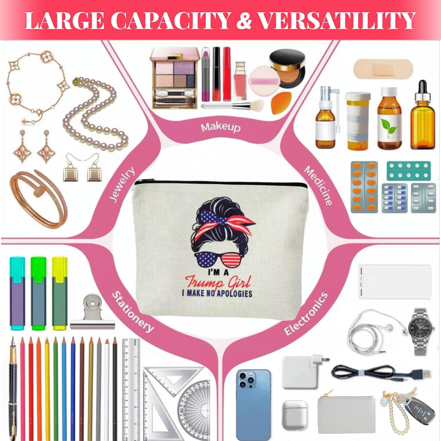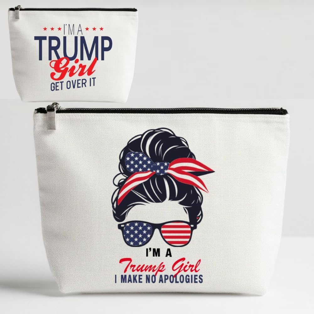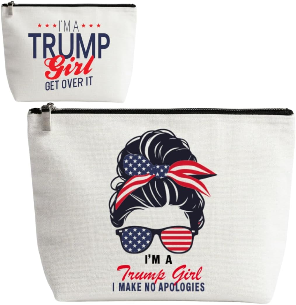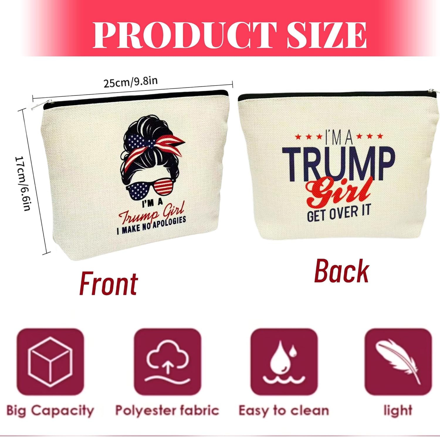 High Quality Material – Trump Girls cosmetic bag made of durable and soft cotton linen fabric and, featuring digital printing that won’t fade. Smooth metal zipper keeps your items secure and the material is easy to clean