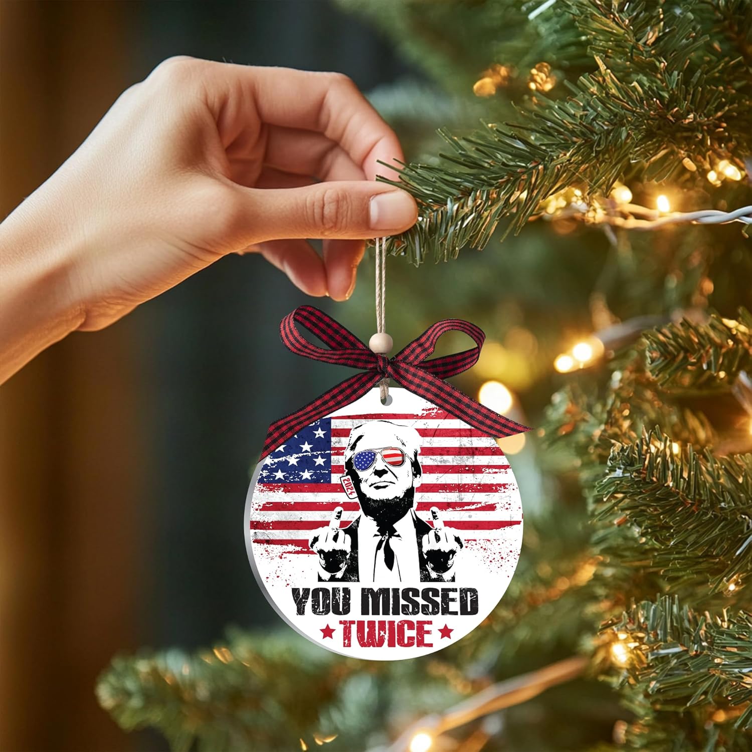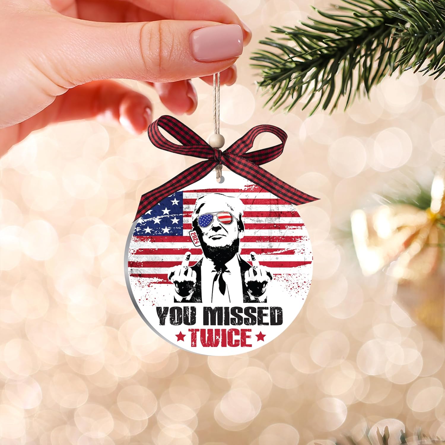 Add a touch of festive charm and patriotism to your holiday decor with our double-layered acrylic ornament. Its unique design and vibrant colors make it a memorable gift or a standout addition to your Christmas tree.