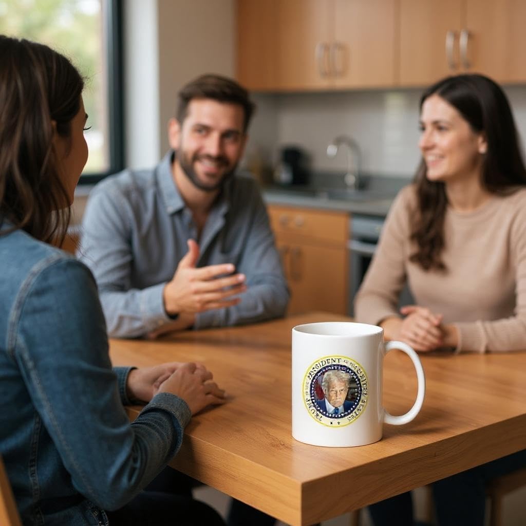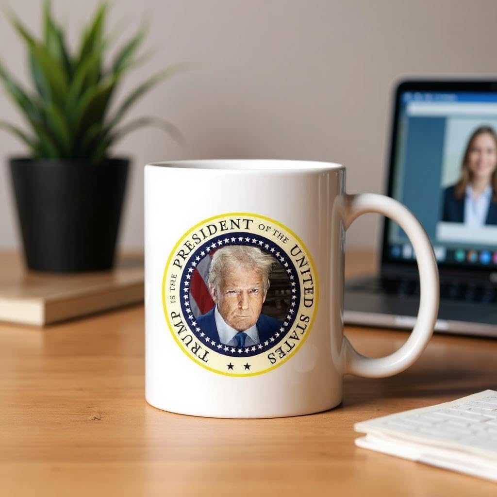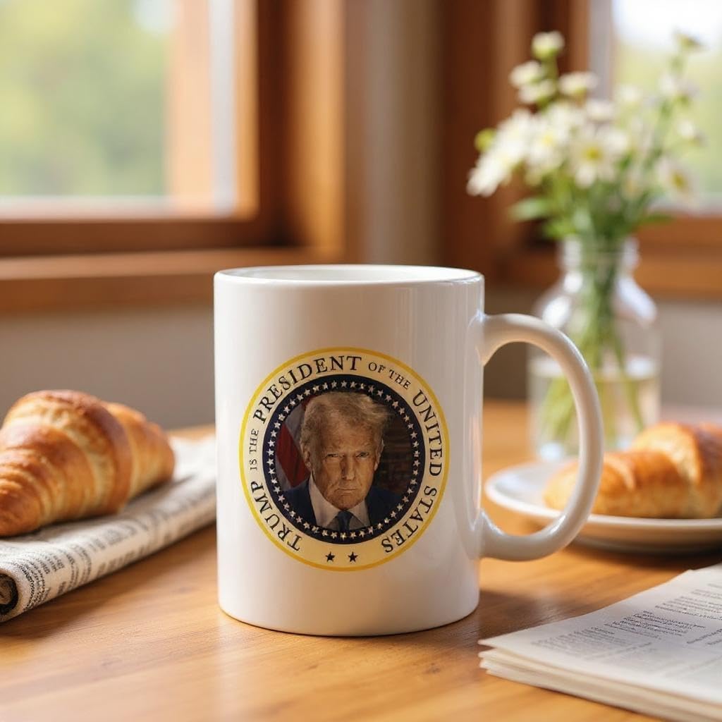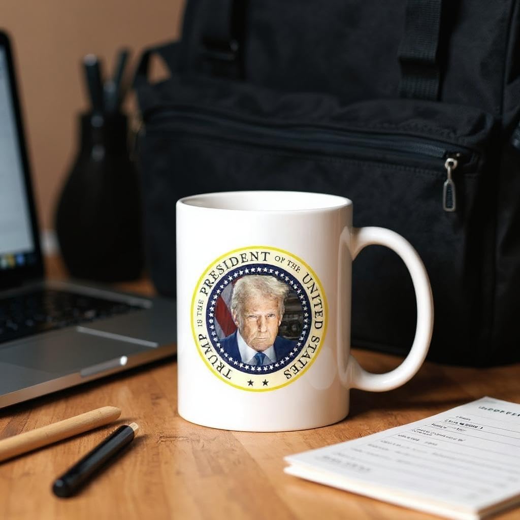 Command your coffee routine with the Trump Presidential Portrait Mug. This 11oz ceramic mug features a bold, full-color portrait of President Donald J. Trump in a classic presidential pose. Whether you’re fueling up for a workday, rally, or freedom-loving rant, this mug makes a statement. ✔️ 11oz ceramic with glossy finish ✔️ Full-color print that won’t fade ✔️ Microwave and dishwasher safe ✔️ Great for conservative gifts, desk accessories, or political events Make coffee great again.