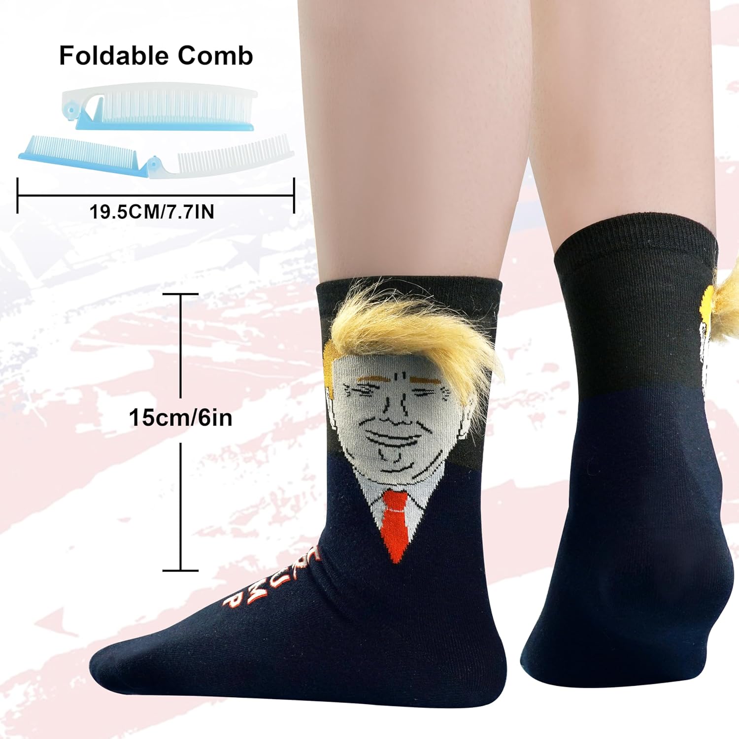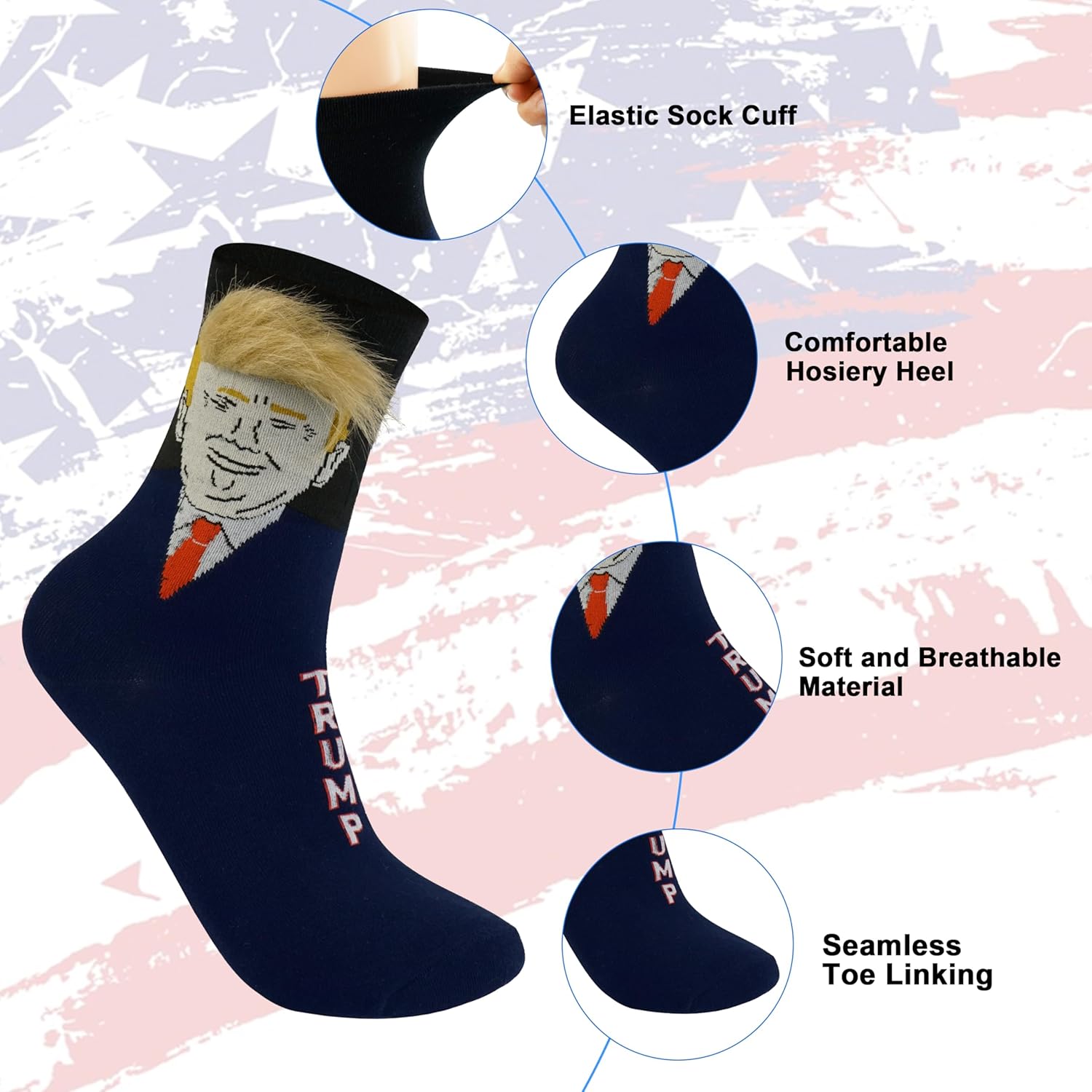Trump Socks with Hair, Funny Trump 2024 Socks – Unisex 1 Pair American Themed Gift