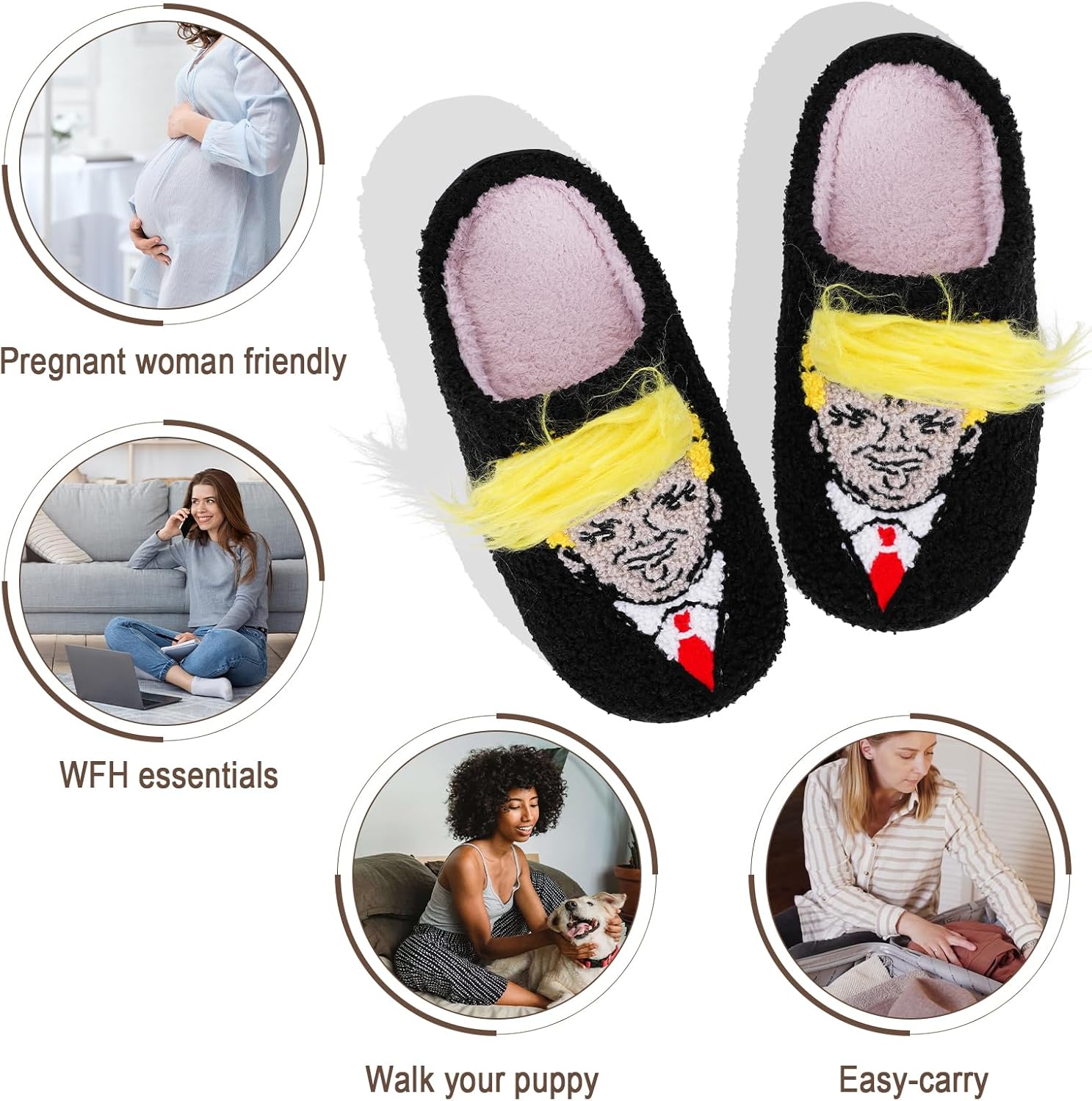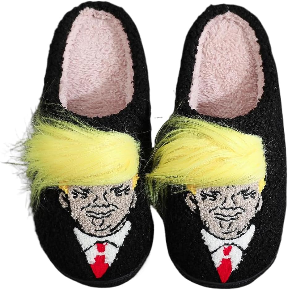 Trump Wig Slippers, Womens Mens House Slippers Trump Slippers, Warm Memory Foam Anti-Slip House Shoes Comfortable Plush Slippers Home Bedroom